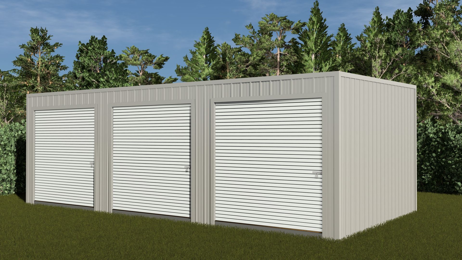 The 30x15 Triple Unit Storage Building provides abundant, multi-use storage utility and includes oversized 8x8 roll-up, steel garage doors. This unit features not only security for your belongings, but rugged durability and weather resistance. Made in the USA, we are proud to offer this spacious unit with its exceptional strength and longevity. Requiring minimal maintenance, this storage building is perfect for business, residential, and even rental needs.